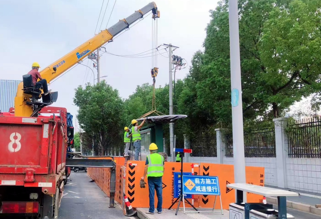 期间,为最大限度减少施工对市民出行的影响,中心精准把握人流量较少的窗口期,组织市政工人提高效率推进施工。过程中,严格按照建设方案完成基础硬化、钢结构基础埋设、成品站亭吊运安装等关键环节,高效优质完成全部建设任务。